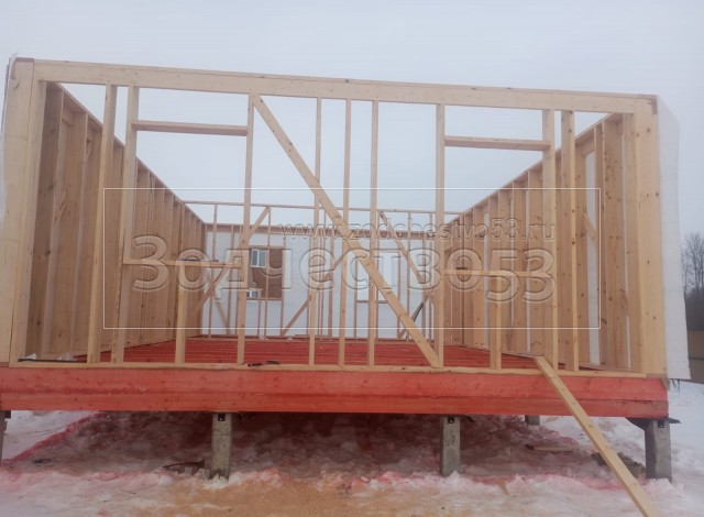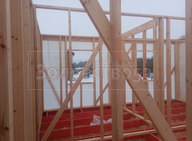 - Стены: каркасно-щитовые, каркас снаружи обшивается Имитацией бруса, а внутри стены обшиваются Вагонкой