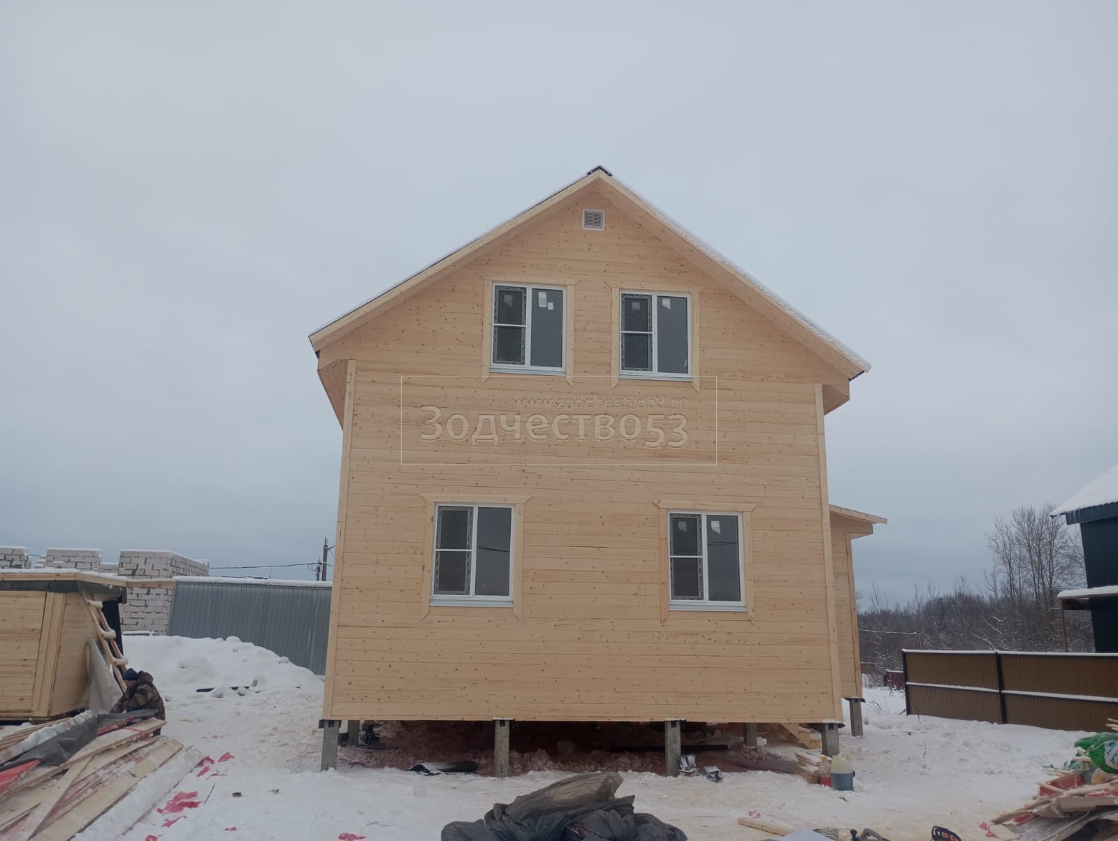 - Фронтоны на дому по 6.0 стороне: Каркасно-щитовые, обшиваются снаружи Имитацией бруса, а внутри Вагонкой