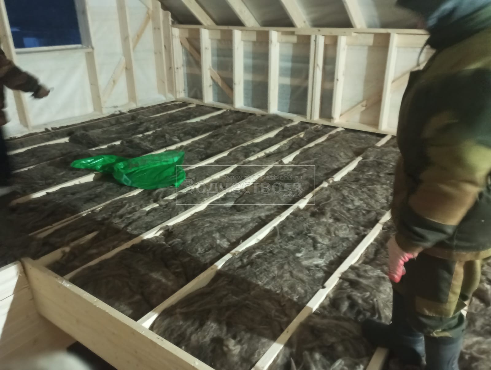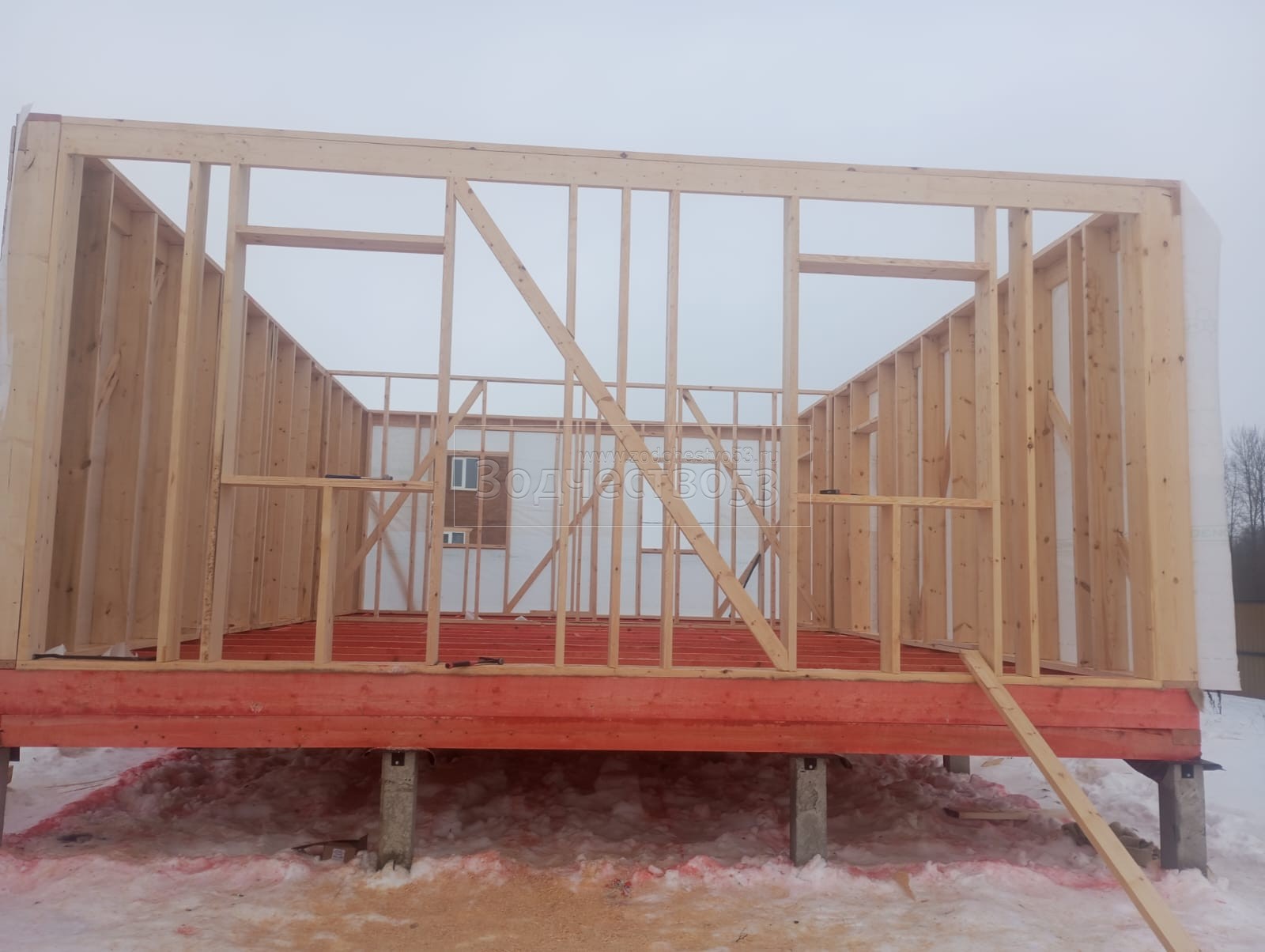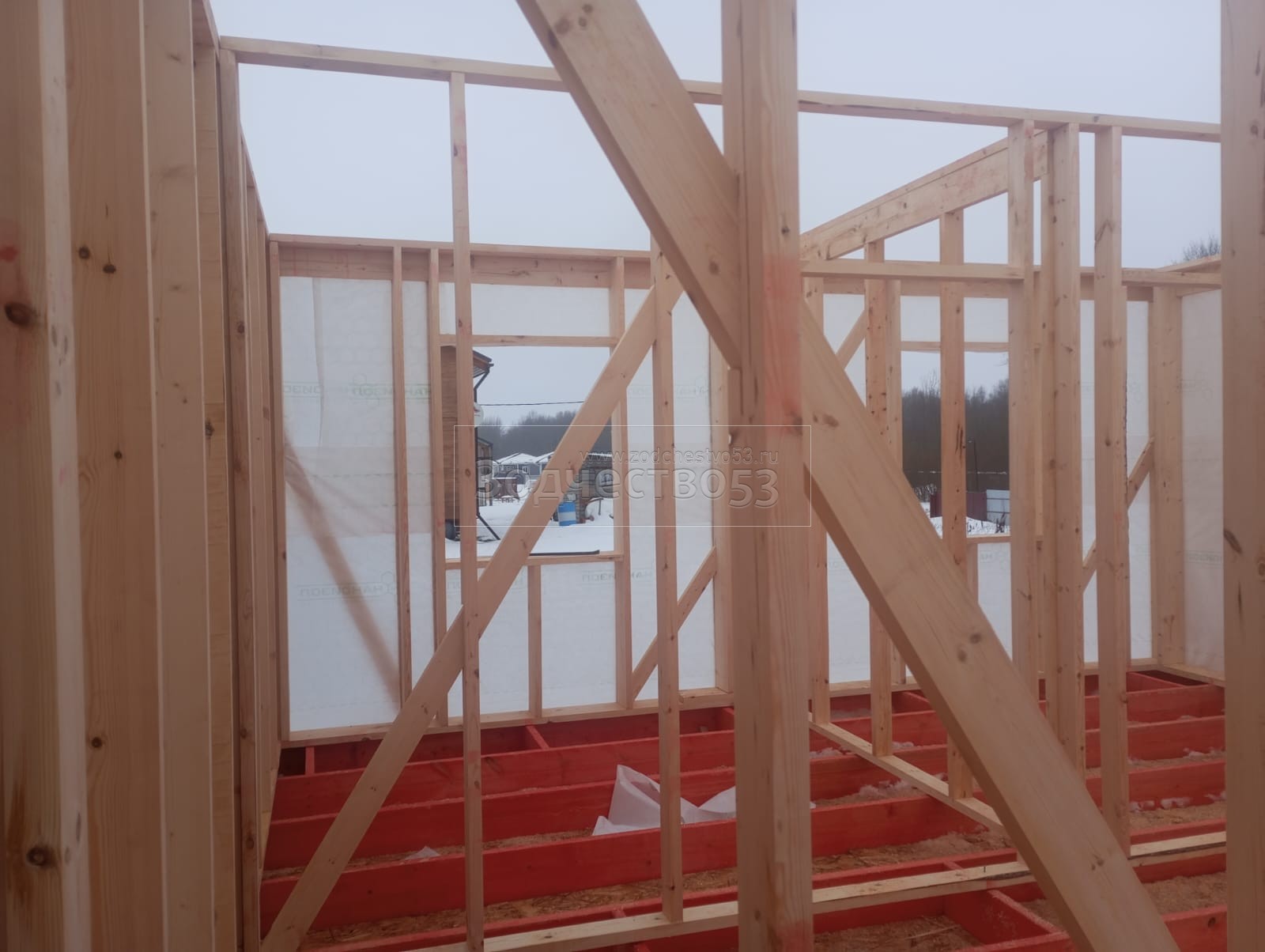 Постройка полутораэтажного дома , общими размерами 9.0×9.0 ( 9.0×6.0 дом ) под двухскатной крышей каркасный и ( 2.80×3.0 дом ) под отдельной односкатной крышей ( Камерной сушки ) с утеплением в 200 мм (стены)