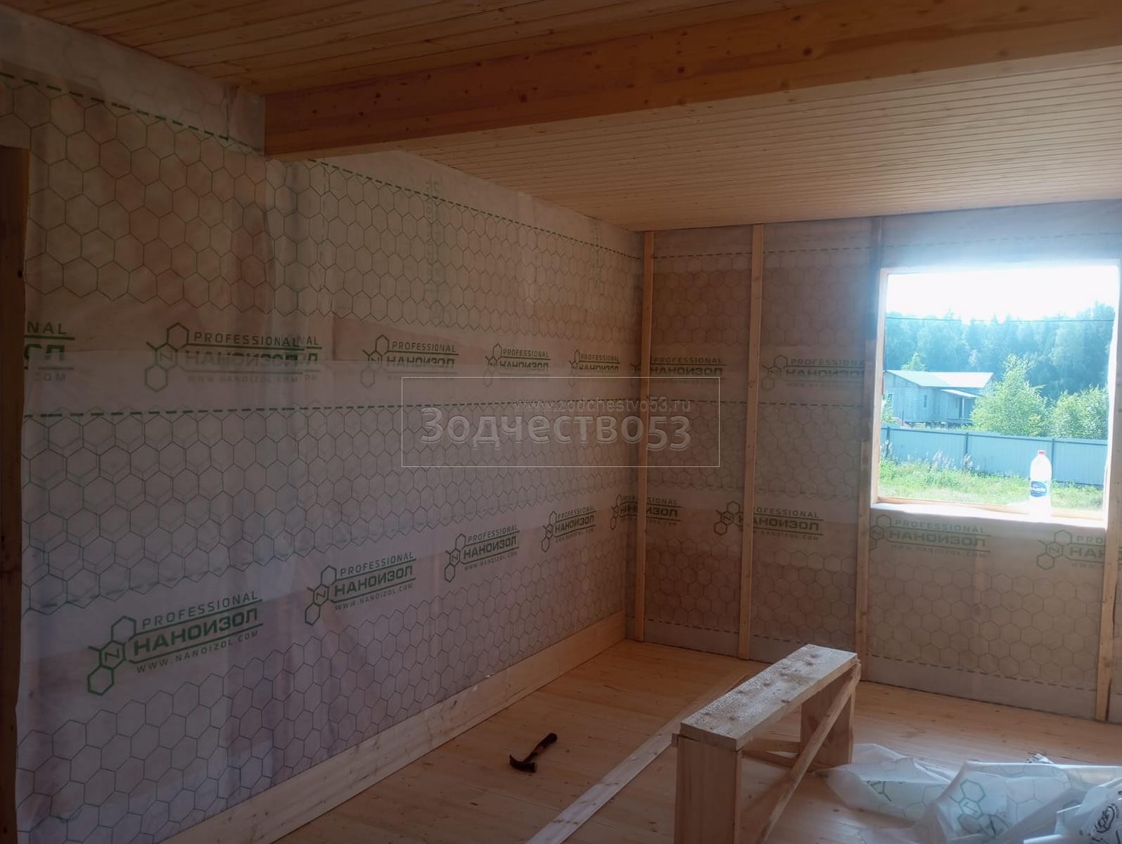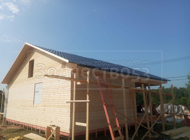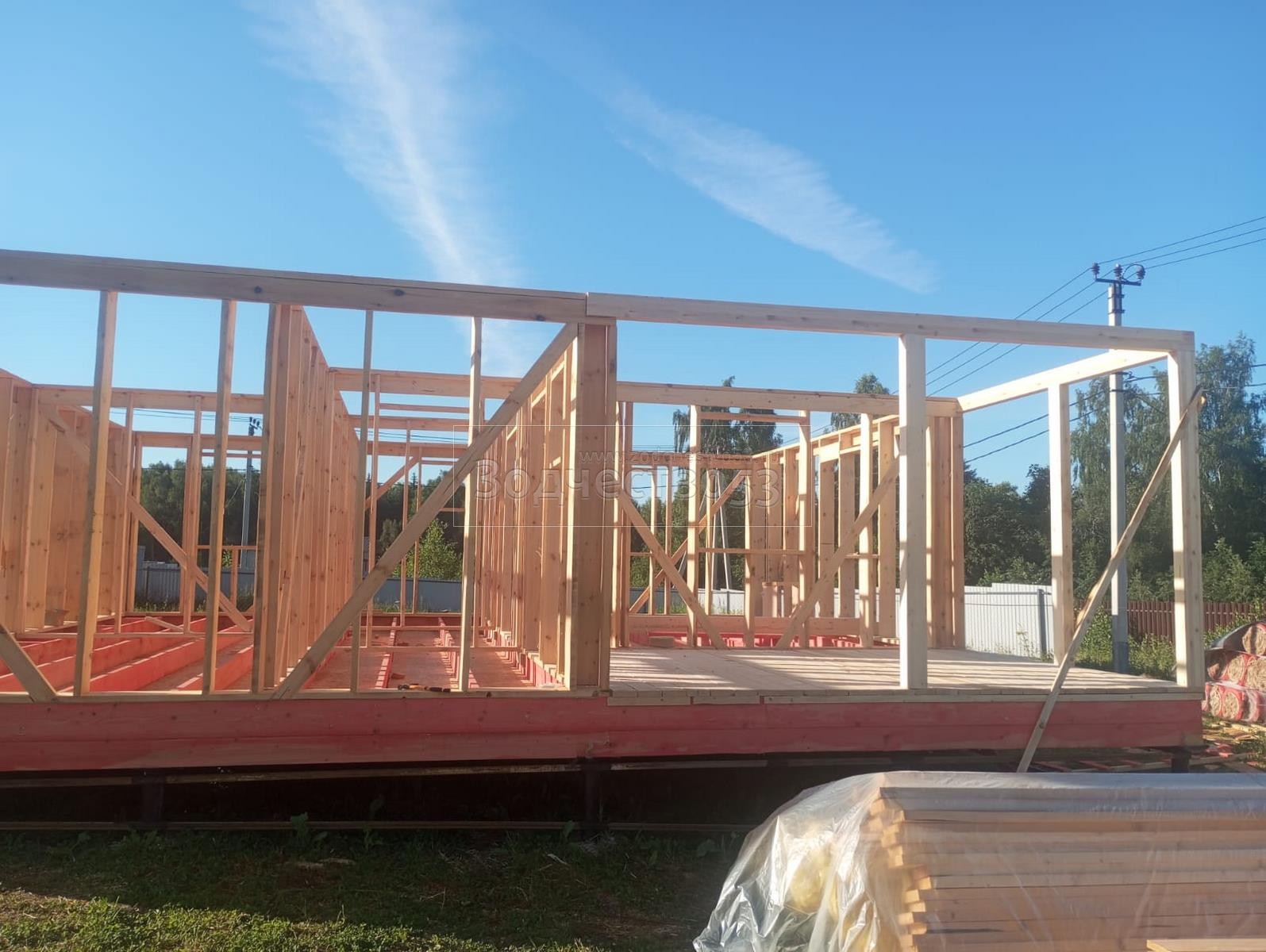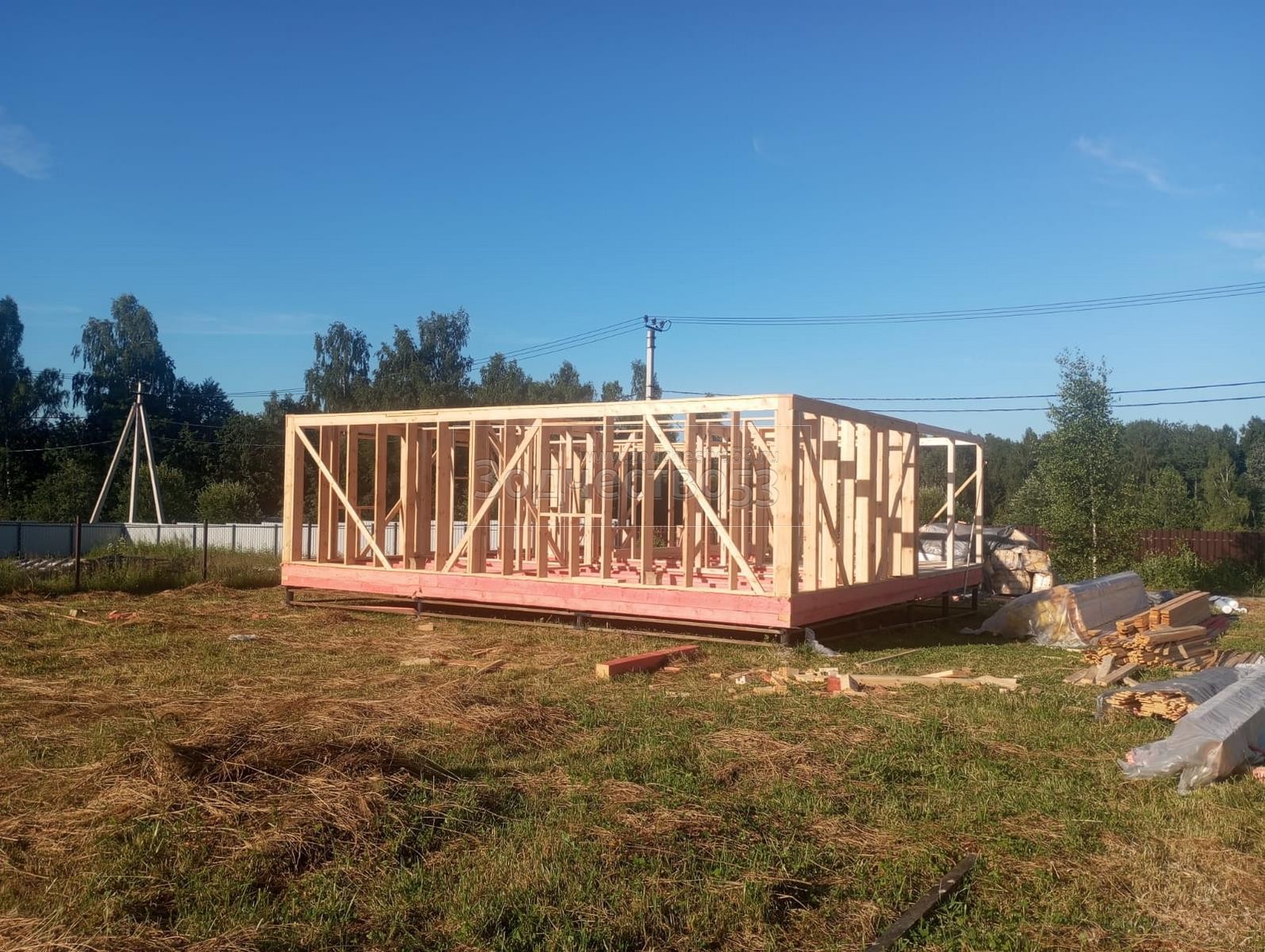 Постройка одноэтажного дома с открытой террасой общими размерами ( 9.0×9.0 каркасно-щитовой (Камерной сушки) с утеплением в 200 мм (стены) под общей двухскатной крышей по проекту : https://zodchestvo53.ru/korneliy