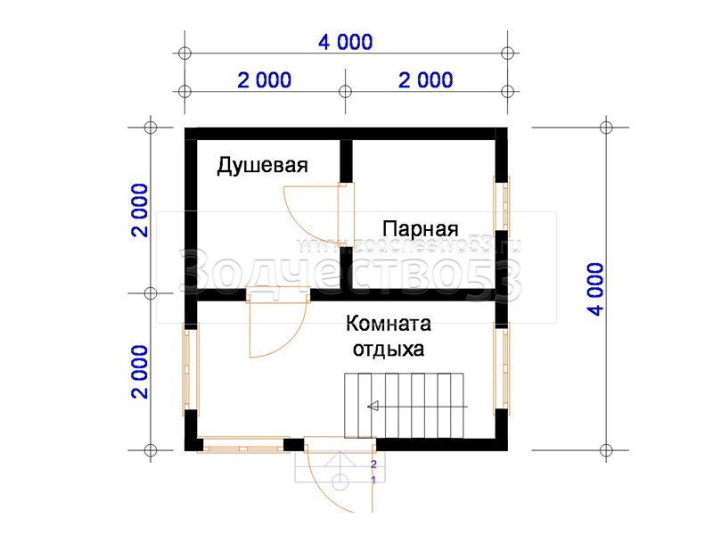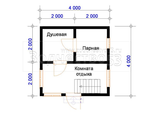 Мимоза. Баня из бруса 4х4 м. с мансардой