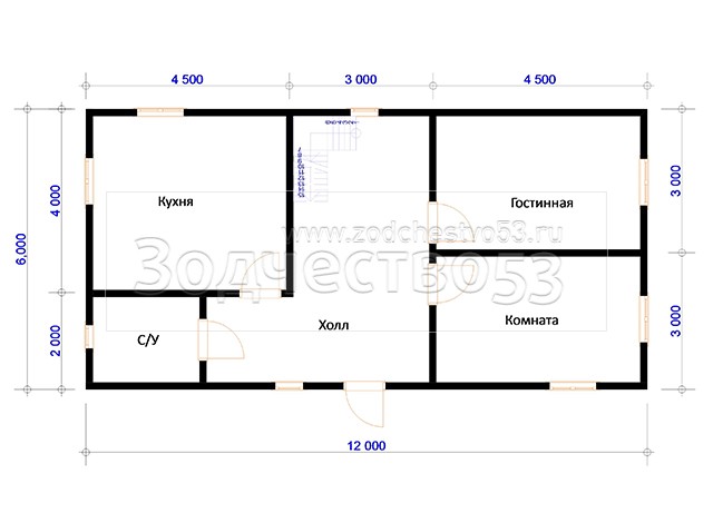 Проект Д-108. Дом из бруса 12х6 м.