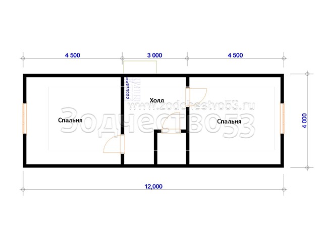 Выгородка комнат 2-го этажа 40x100