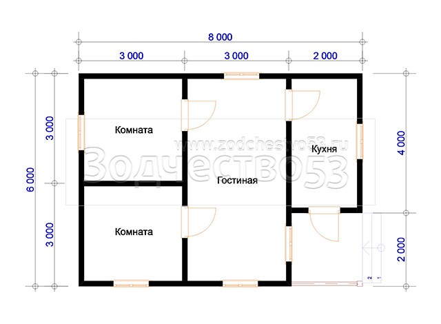 Проект Д-118. Дом из бруса 8х6 м.