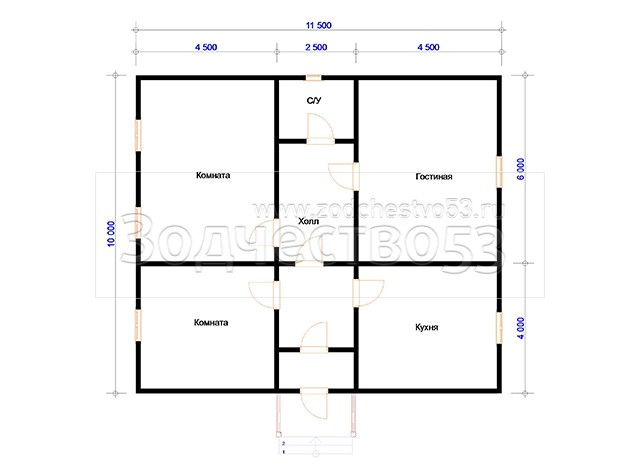Проект Д-123. Дом из бруса 11,5х10 м.