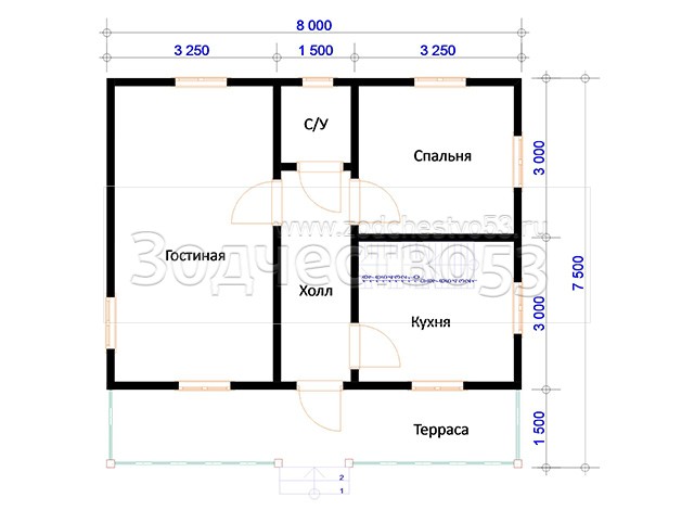Проект Д-132. Дом из бруса 8х7,5 м.