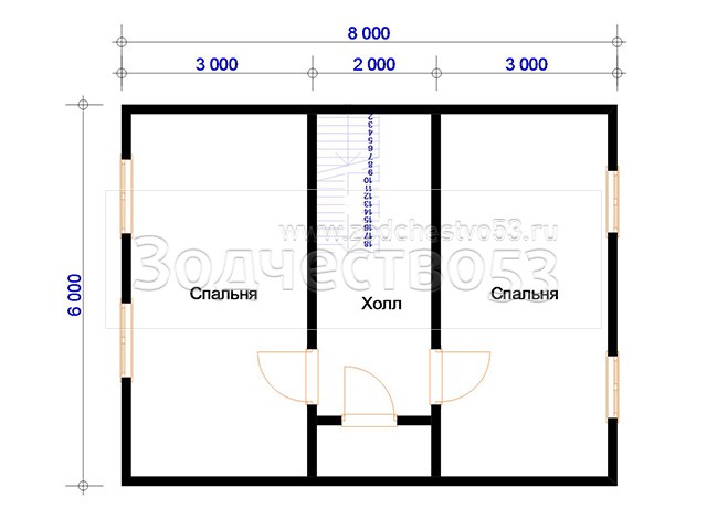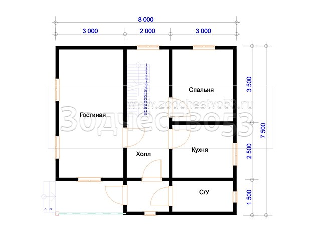 Проект Д-135. Дом из бруса 8х7,5 м.