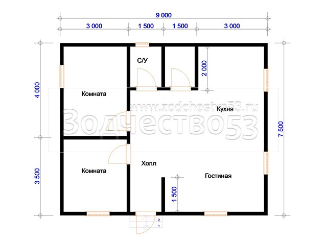 Проект Д-136. Дом из бруса 9х7,5 м.