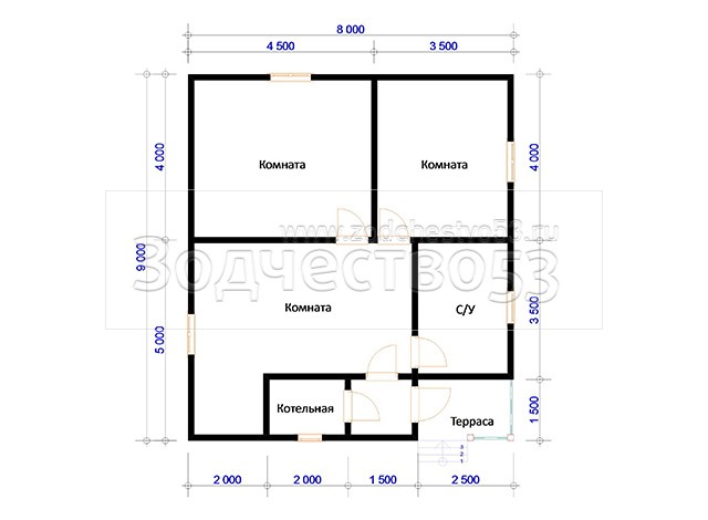Дополнительная перегородка из проф. бруса 150х150 мм.