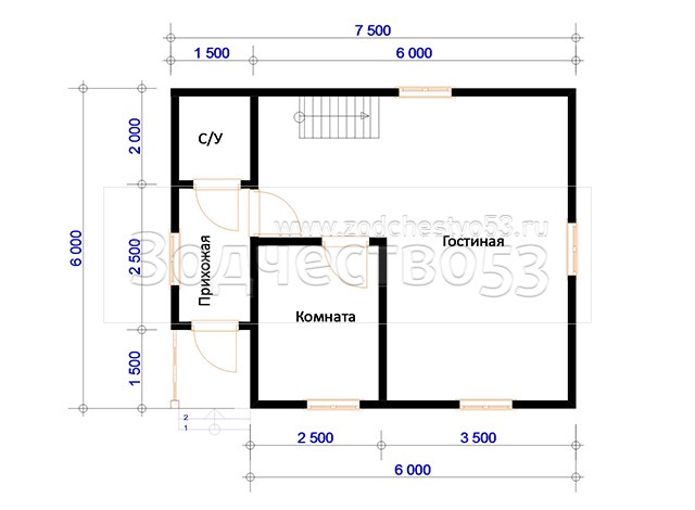 Проект Д-142. Дом из бруса 7,5х6 м.