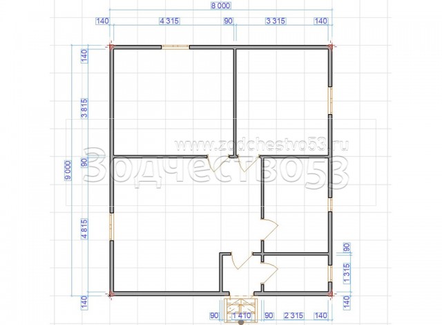 Дополнительная перегородка из проф. бруса 150х150 мм.