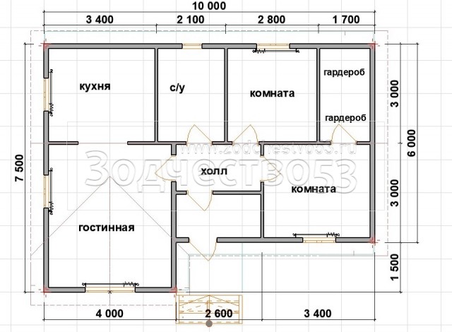 Проект Д-156. Дом из бруса 10х7,5 м.