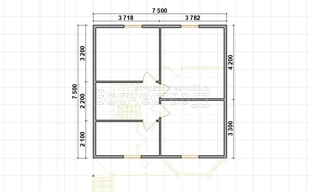Выгородка комнат 2-го этажа 40x100