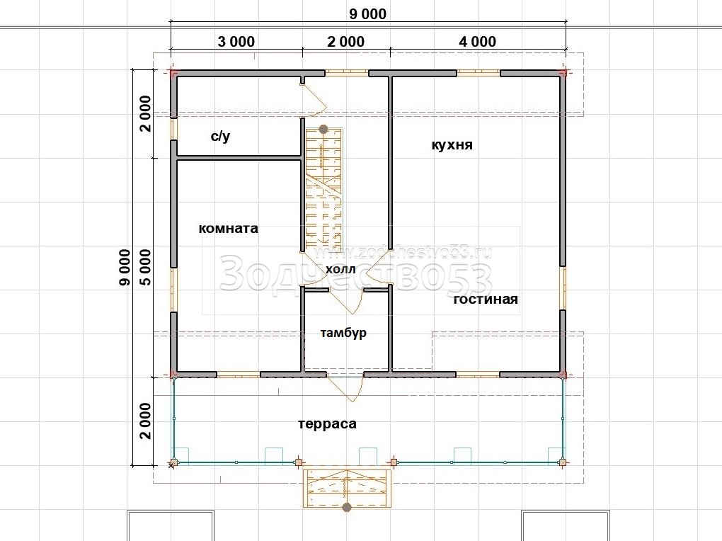 Дополнительная перегородка из проф. бруса 150х150 мм.