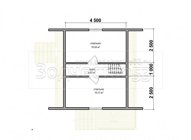 Выгородка комнат 2-го этажа 40x100