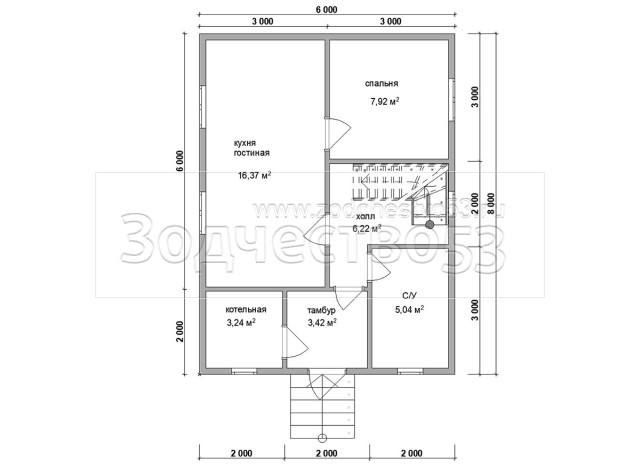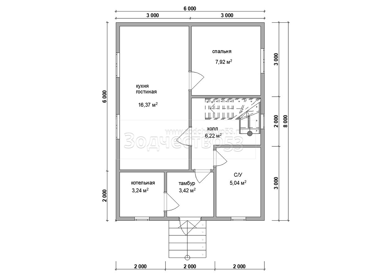 Проект Д-170. Дом из бруса 6х8 м.