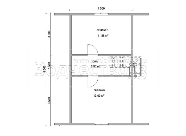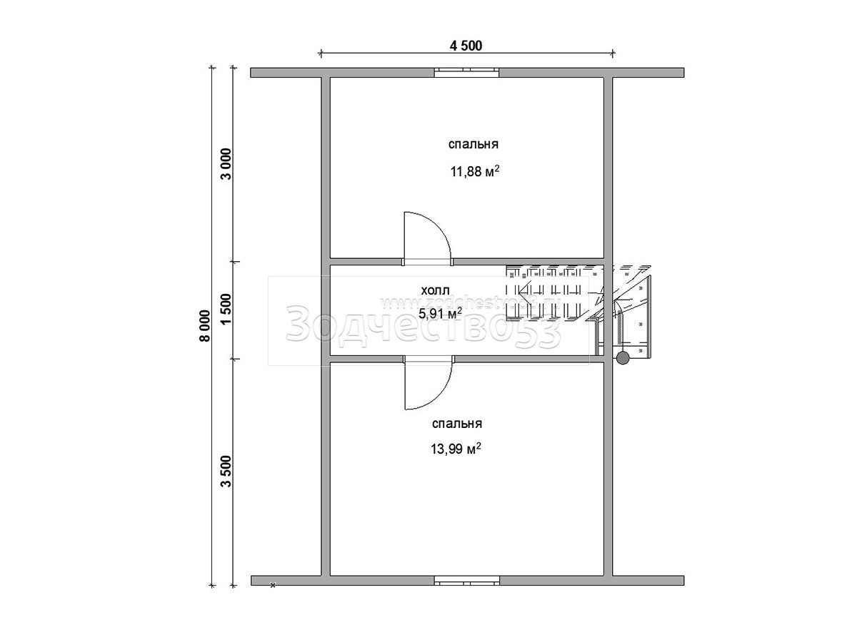 Выгородка комнат 2-го этажа 40x100