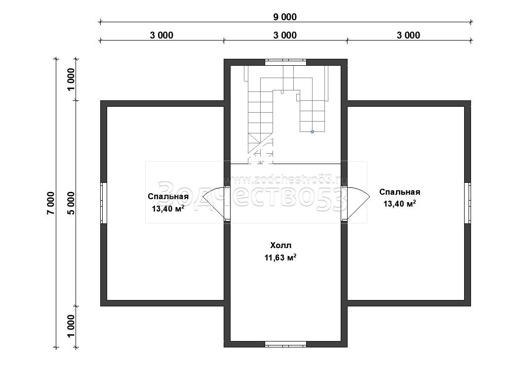 Выгородка комнат 2-го этажа 40x100