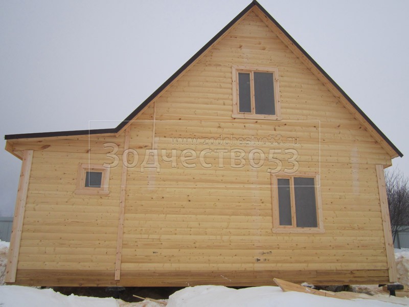 Отделка фронтонов и стен блокхаусом.