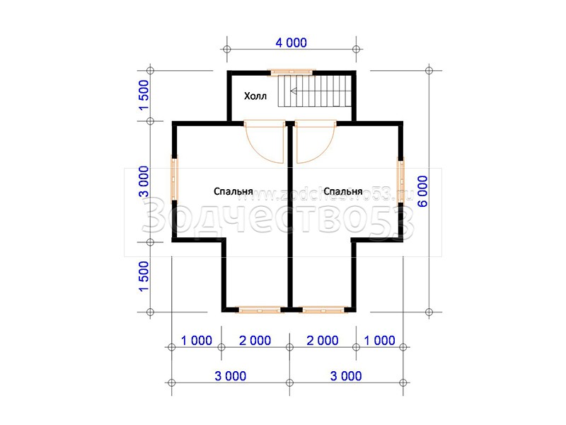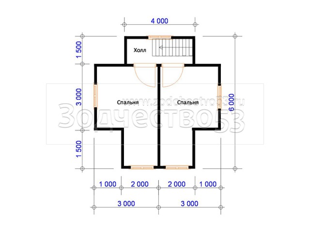 Второй этаж: спальня 11,01 м², спальня 11,01 м², холл 5,28 м².