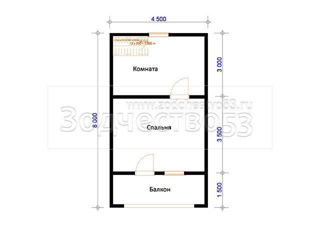 Выгородка комнат 2-го этажа 40x100