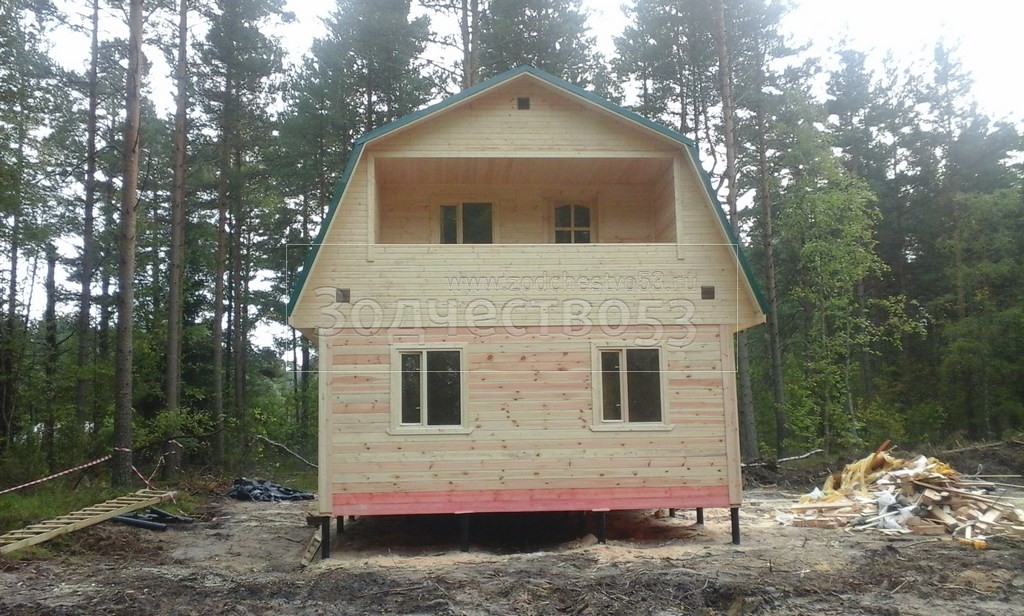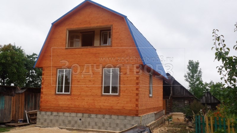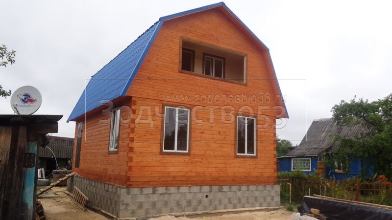 Отделка фронтонов и стен блокхаусом.