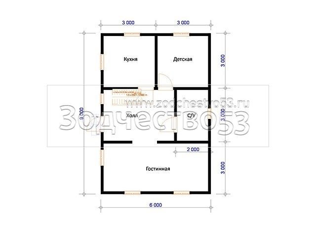 Проект Д-38. Дом из бруса 6х9 м.