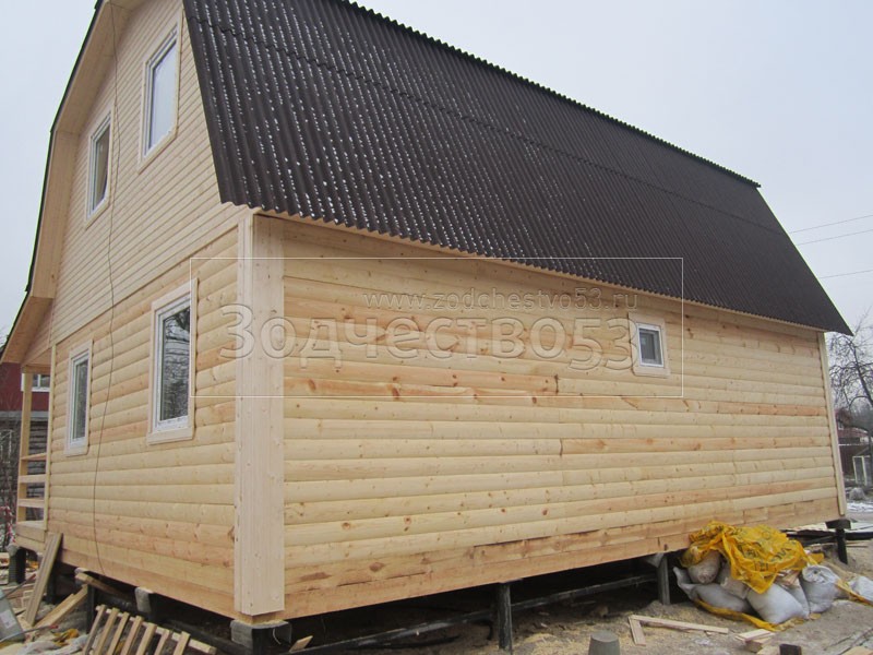 Отделка фронтонов и стен блокхаусом.