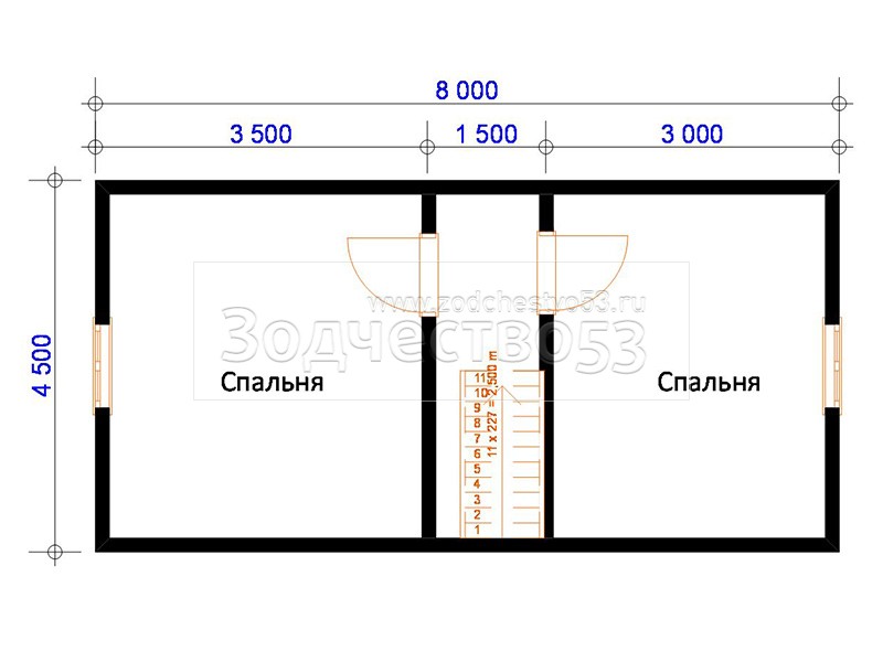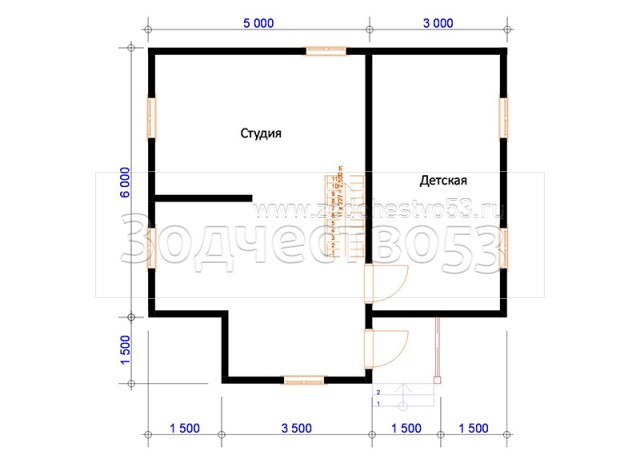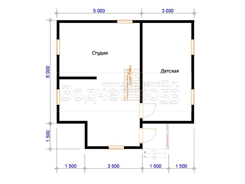 Проект Д-45. Дом из бруса 7,5х8 м.