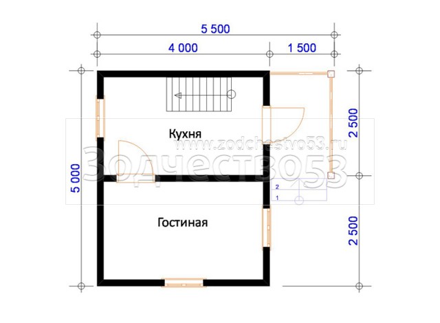 Проект Д-5. Дом из бруса 5х5,5 м.