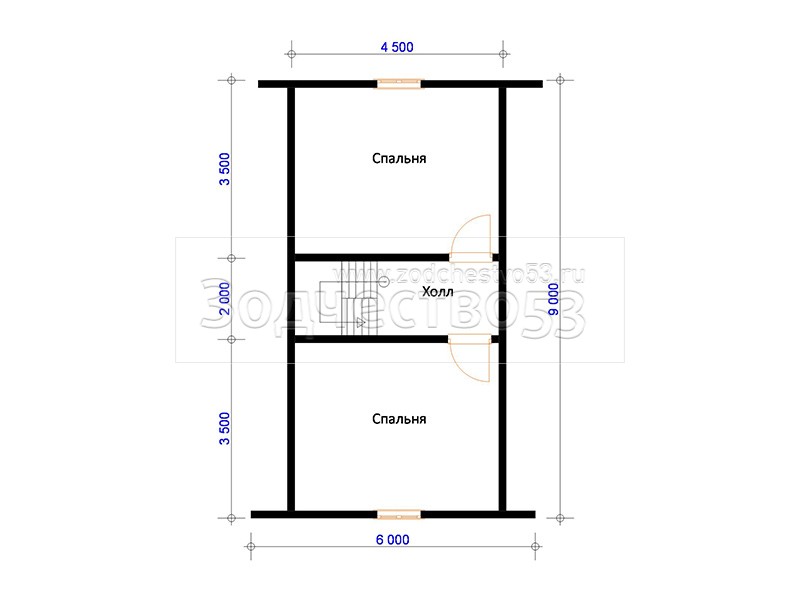 Второй этаж: спальня 14,69 м², спальня 14,69 м², холл 8,14 м².
