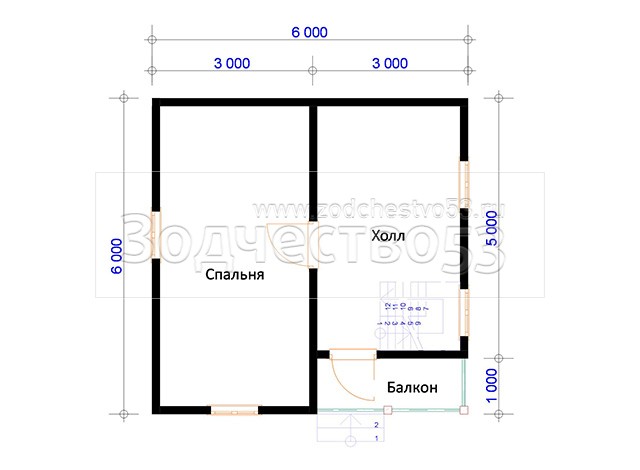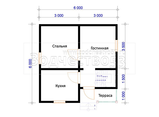 Проект Д-61. Дом из бруса 6х6 м.