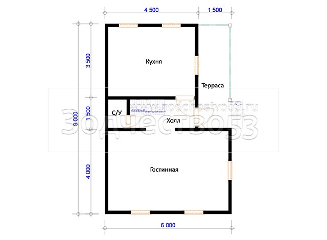 Дополнительная перегородка из проф. бруса 150х150 мм.