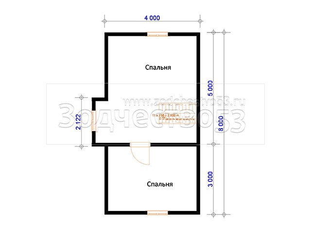 Выгородка комнат 2-го этажа 40x100