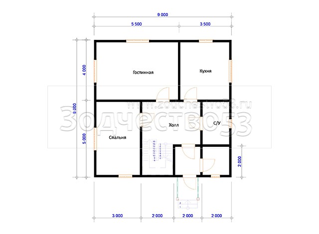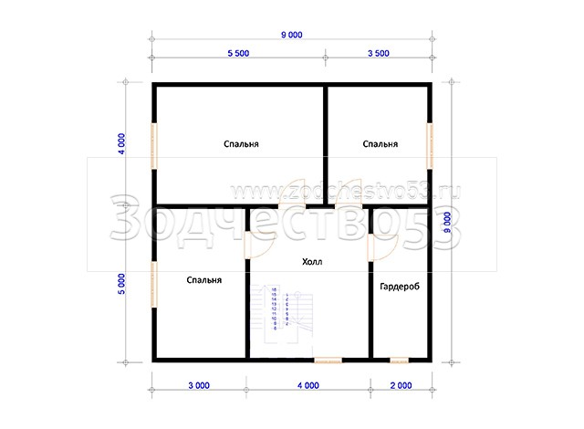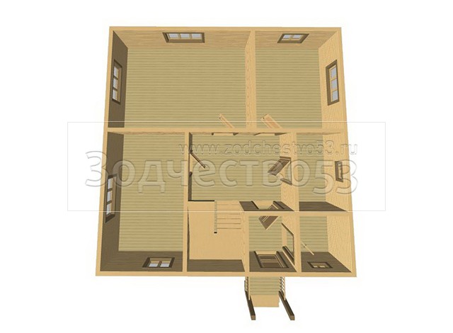 Проект Д-68. Дом из бруса 9х9 м.