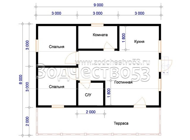 Проект Д-70. Дом из бруса 8х9 м.