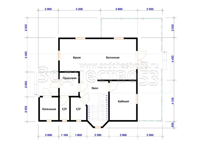 Проект Д-83. Дом из бруса 12,5х10,5 м.