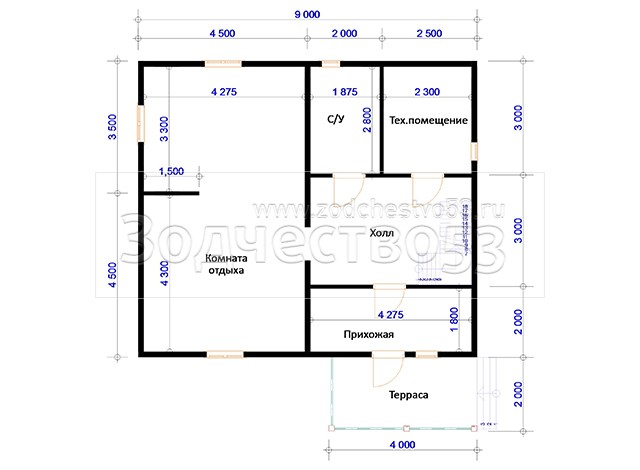 Дополнительная перегородка из проф. бруса 150х150 мм.