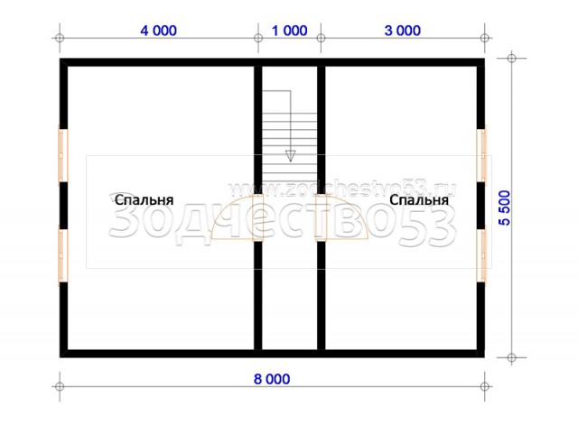 Выгородка комнат 2-го этажа 40x100