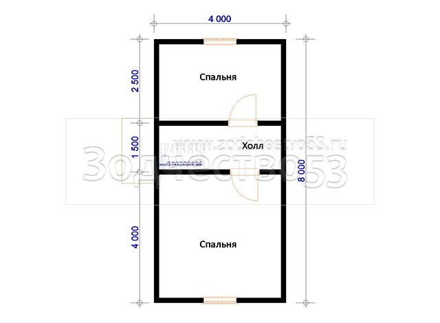 Дополнительная перегородка из проф. бруса 150х150 мм.