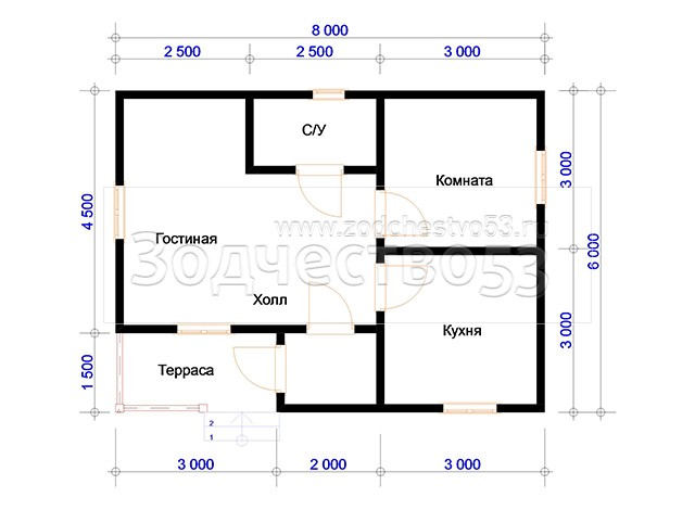 Проект Д-91. Дом из бруса 6х8 м.