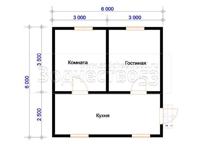 Проект Д-96. Дом из бруса 6х6 м.