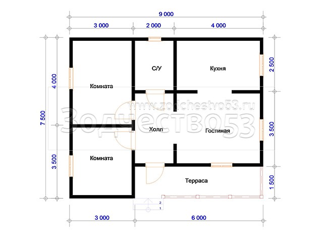 Проект Д-97. Дом из бруса 9х7,5 м.