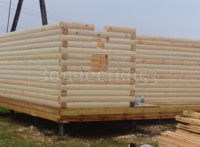 - Стены: профилированный брус 150×150, сборка на нагеля в тёплый угол (тёплый угол в подарок) высотой 16 венцов 2.16-2.20м.