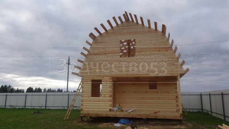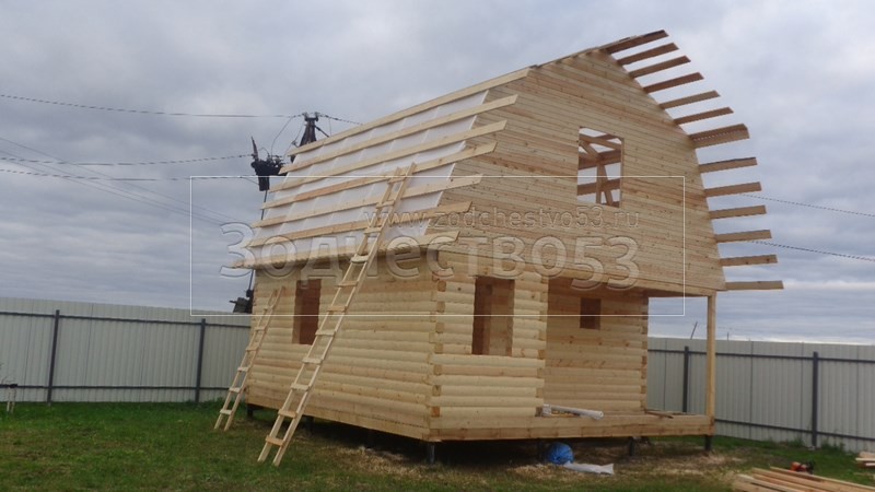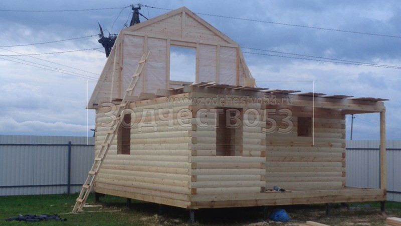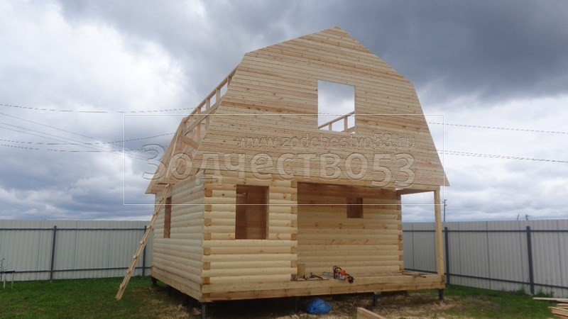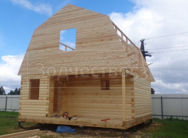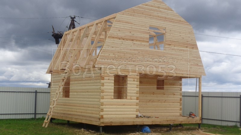 Сруб бани 6×6 м. из профилированного бруса 150×150 по проекту Крокус под ломанной крышей. Построена: Тверская область, Калининский район, Каблуковское сельское поселение.