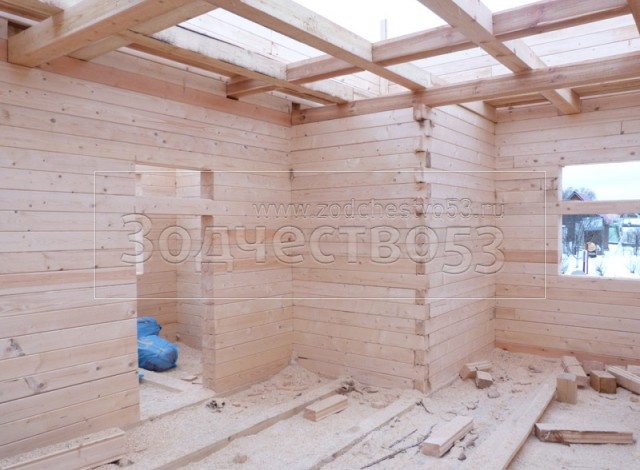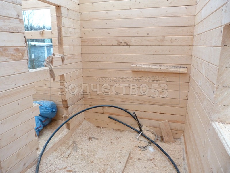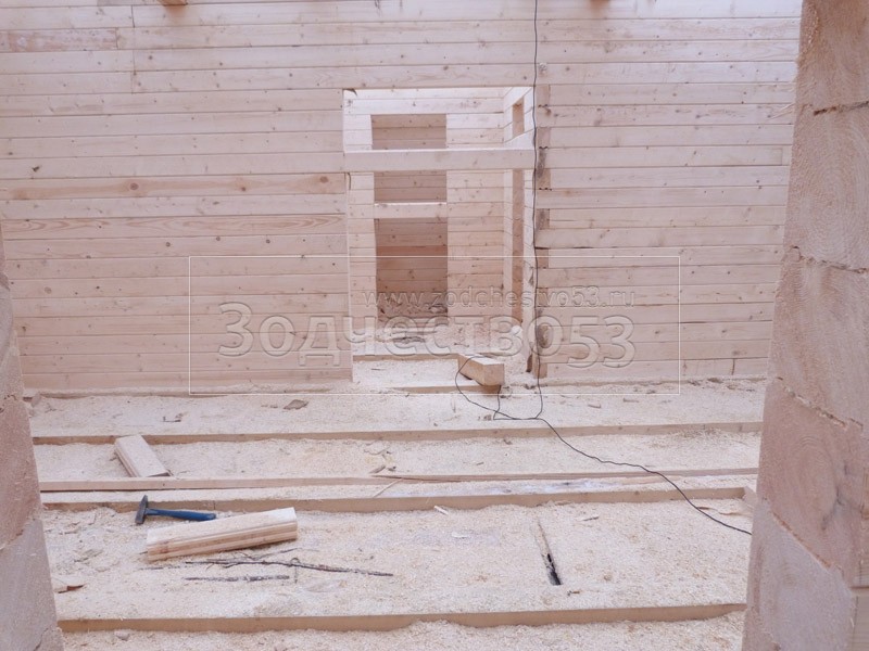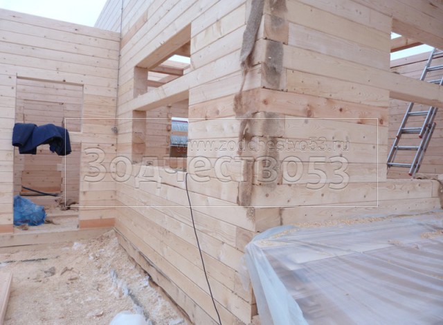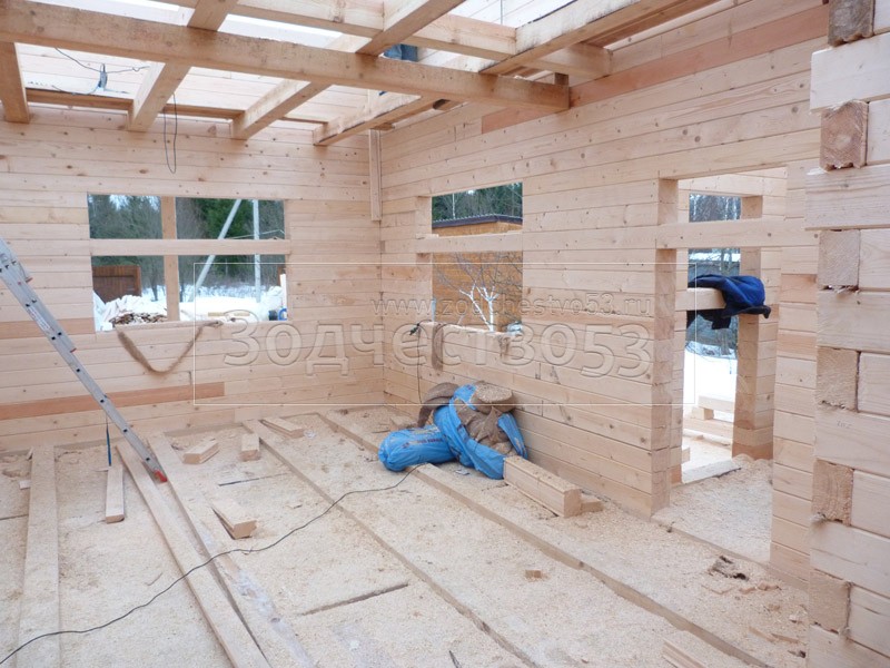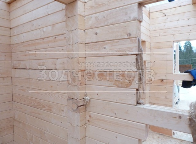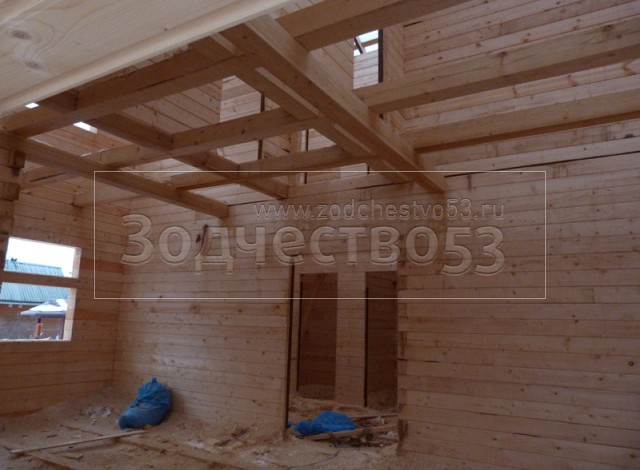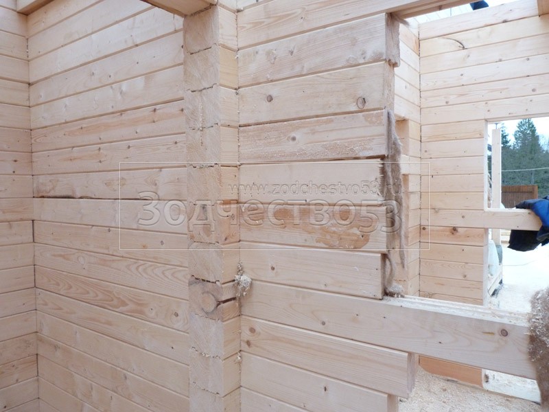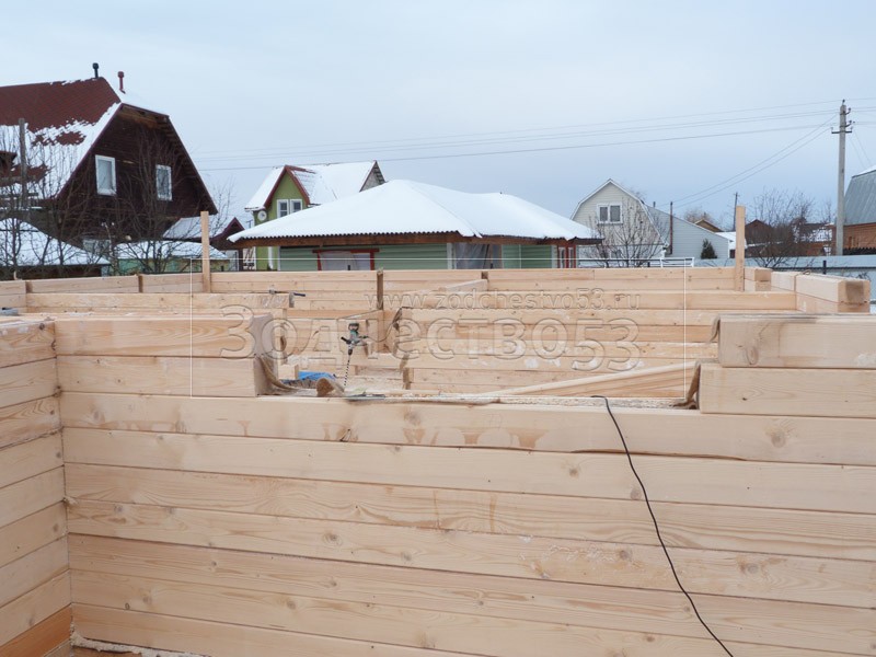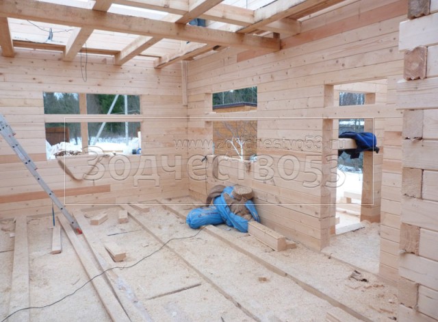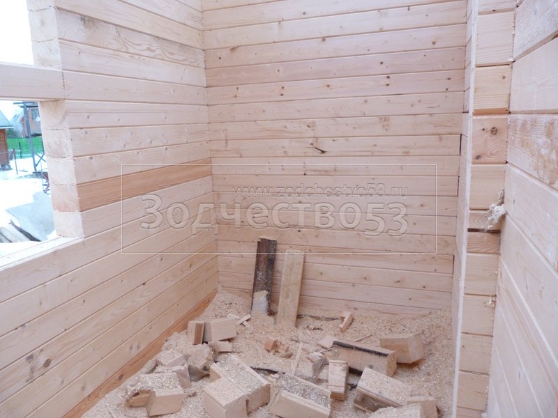- Перегородки второго этажа из профилированного бруса 100×150 (прямой), 19 венцов, высотой