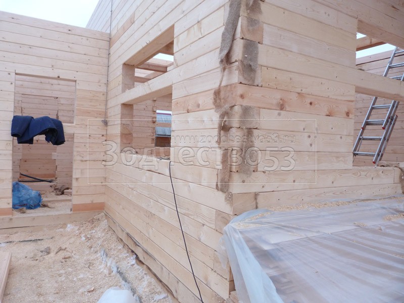 2.72-2.80, с проложкой льнополотна, сборка на нагеля в тёплый угол. - Второй этаж общими размерами 8.0×10.2 (8.0×8.0 из профилированного бруса 150×200, 19 венцов, высотой