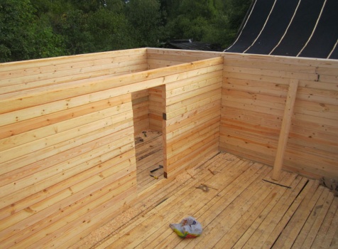 Фронтоны — каркасно-щитовые, обшитые блок-хаусом.