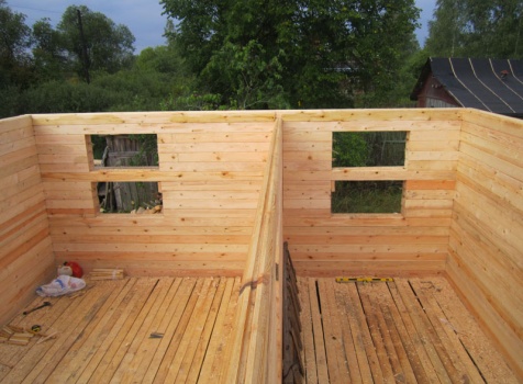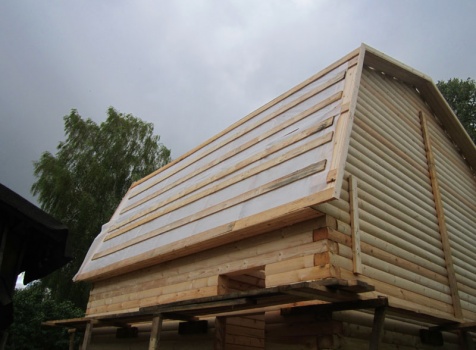 • Фронтоны — каркасно-щитовые, обшитые блок-хаусом.