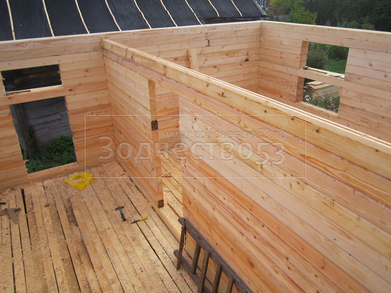 - Стены из профилированного бруса 200×150 — 18 венцов, высотой
